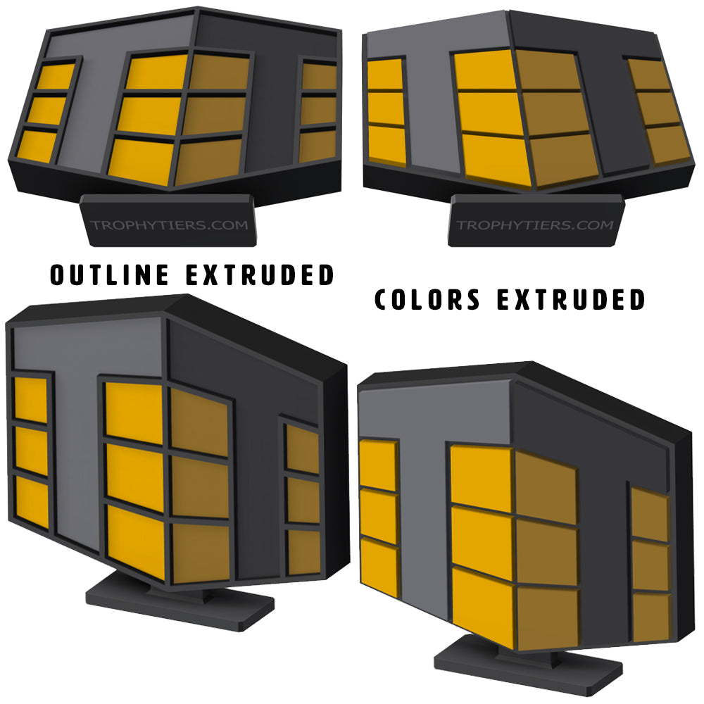Each color will be extruded at a different distance to give it a more enhanced 3D appearance. If it makes sense for your logo, I will send you two proofs - one with the outlines extruded, and one with the colors extruded for you to choose between. Unfortunately we cannot accommodate gradients in logos.