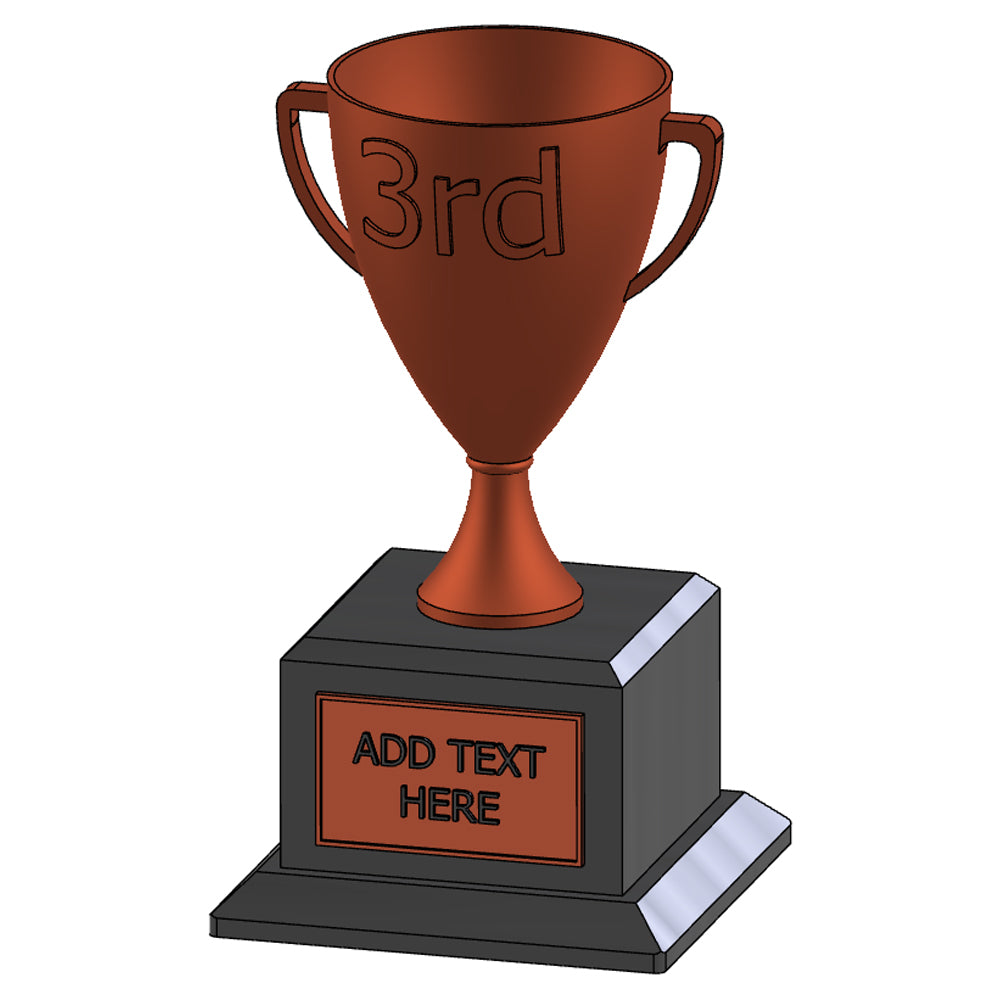 For a set of three trophies, all three need to be added to the cart (keep the sizes the same for the name plates).